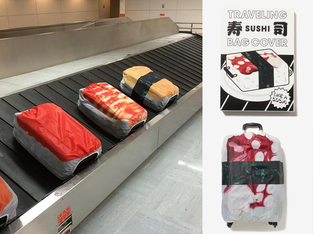 千奇百趣!日本人的創(chuàng)意真系無極限。上年有公司推出了防水的壽司行李箱套,當中有蛋、金槍魚、三文魚以及蝦壽司。行李急穿上新衣后出現(xiàn)在行李輸送帶,就如放大版的迴轉(zhuǎn)壽司,好抵死!