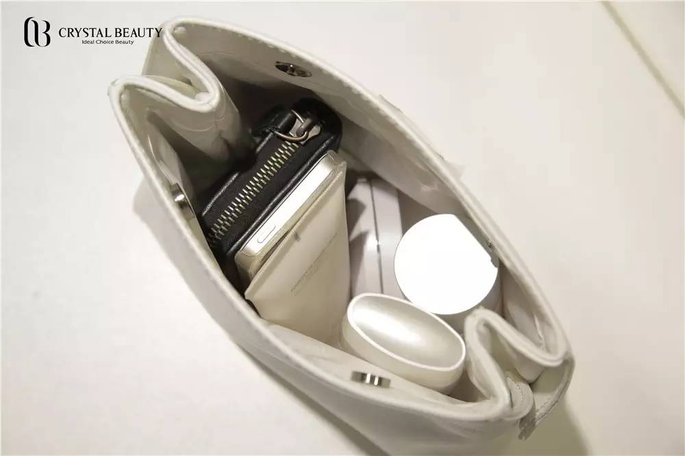 看著嬌小的包包,其實(shí)有容乃大。里面不僅可以放置整一套CB護(hù)膚產(chǎn)品,也可以作為獨(dú)立的包包使用,放置錢包手機(jī)等等。如果你覺得不夠,還可以打開兩側(cè)的金屬扣,空間立刻就來啦。