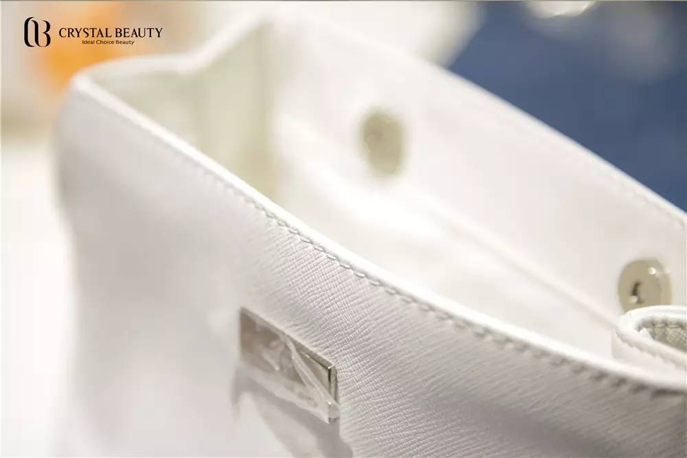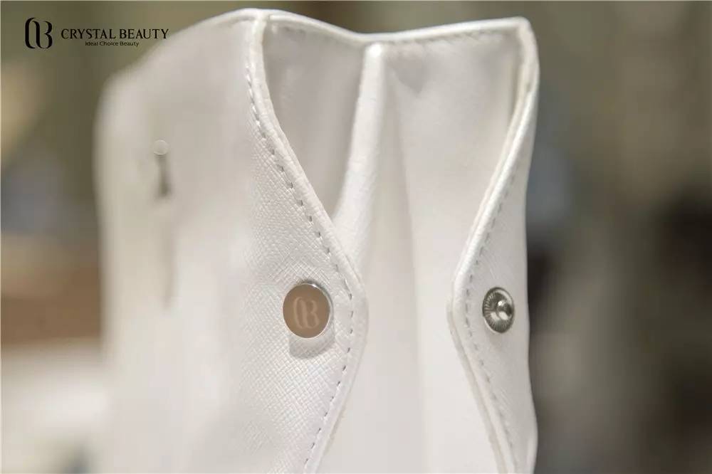 CB愛斯貝綺化妝包,沒有華麗的妝飾,純白的外觀搭配了4個(gè)銀色金屬扣和一個(gè)銀色CB LOGO,簡(jiǎn)約大氣,又如美麗般一塵不染。