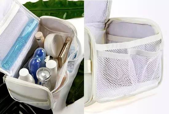 設計師貼心的為你配了一個大大的防水洗漱包,容量超極大,有12.5×12.5×23cm,而且內部結構分配合理,所有瓶瓶罐罐都能有序的擺放,再也不怕液體漏出來弄臟衣服。