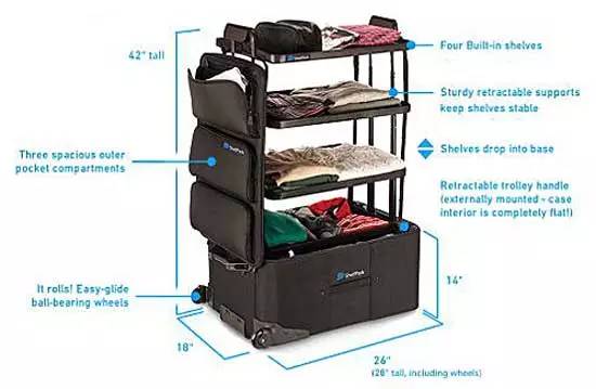 它是由一位飽受出差理衣服之苦的宅男發(fā)明的,還一舉獲得了2015TGA最好的新產(chǎn)品大獎。就是這個箱子要350美元 ,小貴。